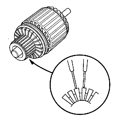 8. Check for continuity between the segments of the commutator. If there is an open circuit between any segments, replace the armature.