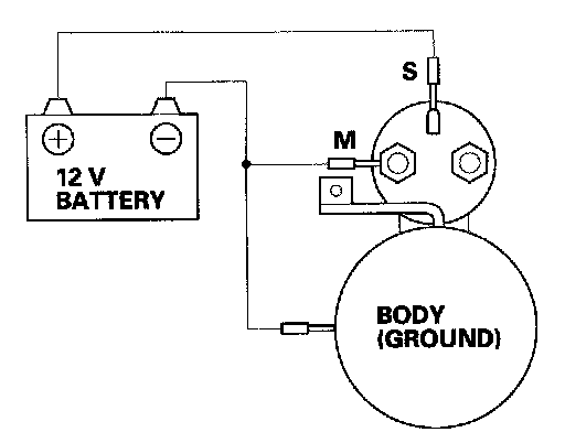 4. Disconnect the battery from the M terminal. If the pinion does not retract, the hold-in coil of the solenoid is working properly.