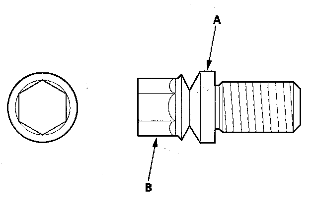 7. Tighten the shear bolts (A) until the hex heads (B) twist off.