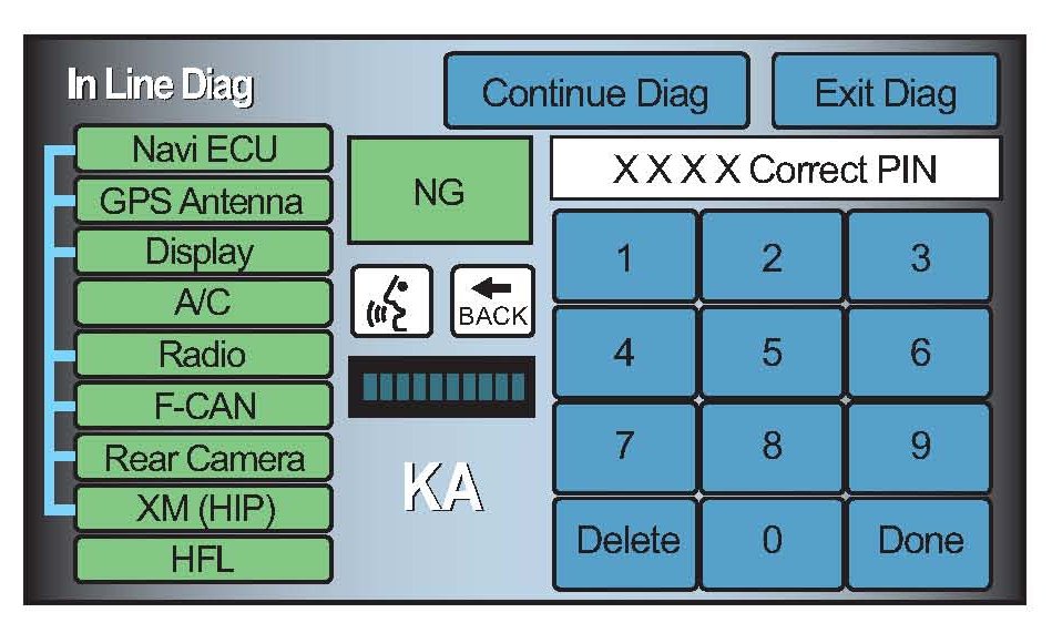 1. Do the normal TQI of the vehicle, including the audio system. The navigation system voice will not function until the 5-digit anti-theft code for the audio system has been entered.