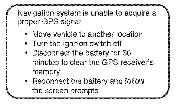 ^ The GPS antenna receives location information from orbiting satellites. Anything that blocks or interferes with the signal affects accuracy. The GPS signal can be blocked or interfered with (vehicle position shown incorrectly on the map) by these items: