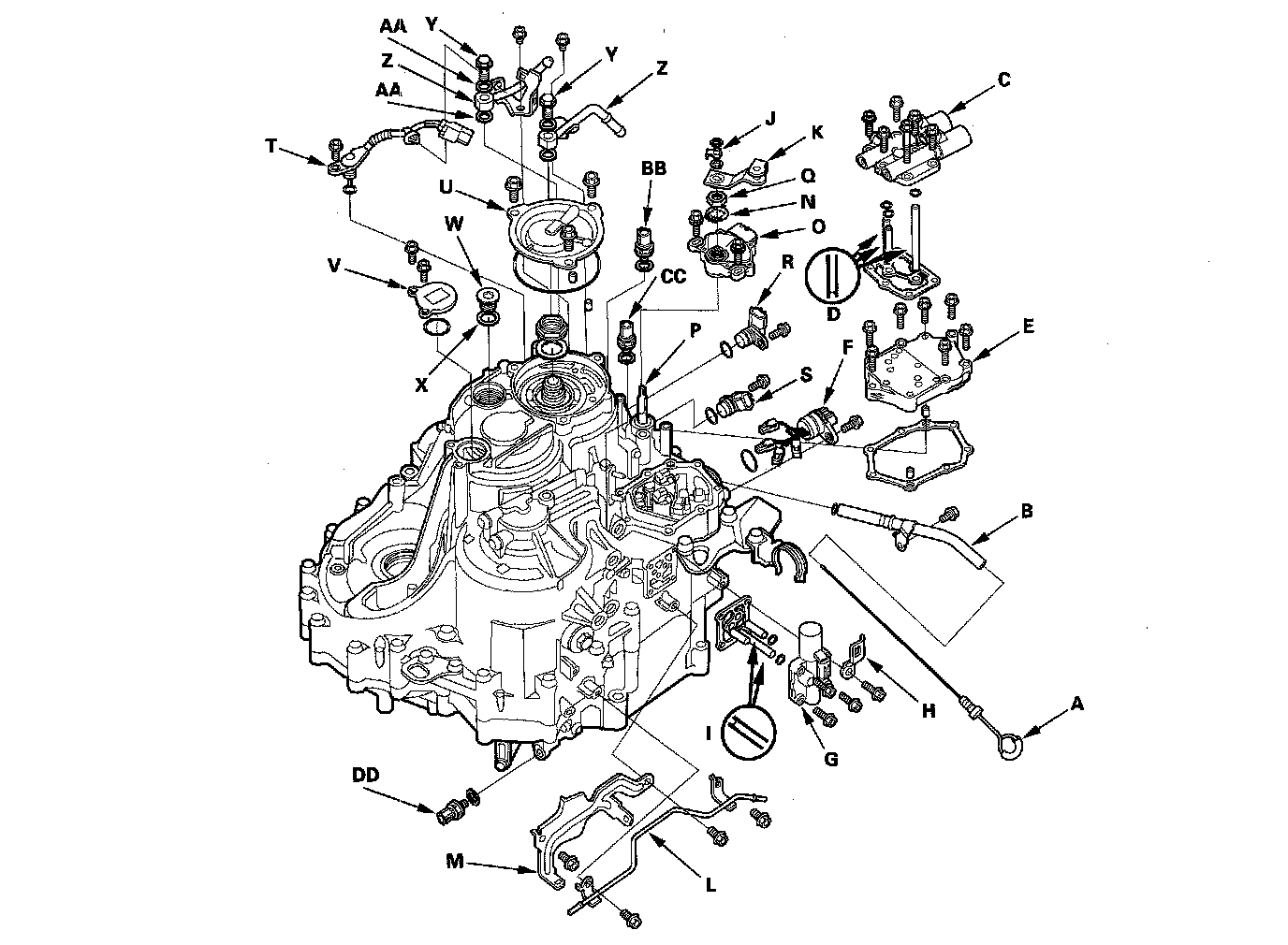 17. Remove the 2nd clutch transmission fluid pressure switch (DD) and sealing washer.