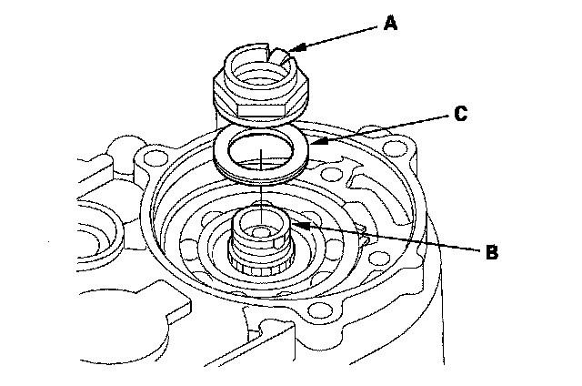 21. Pry the lock washer (C), and remove it.
