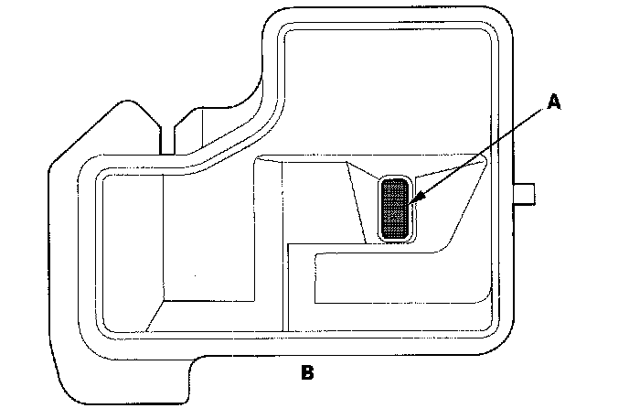 50. Clean the inlet Opening (A) of the ATF strainer (B) thoroughly with compressed air, then check that it is good condition and that inlet opening is not clogged.