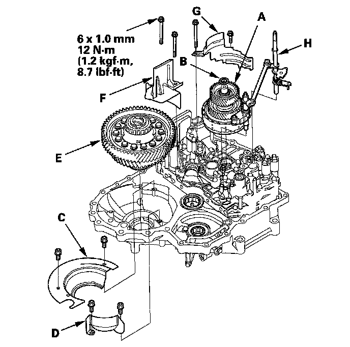 20. Install the baffle plates (F) (G), and make sure if the differential is clear of the baffle plate.