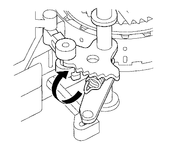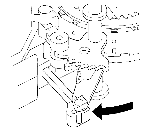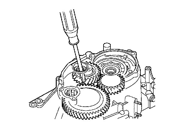 34. Wrap a screwdriver tip with tape to prevent damage to the reverse idler gear teeth. Engage the reverse idler gear with reverse gears by rotating the idler gear using the screwdriver.