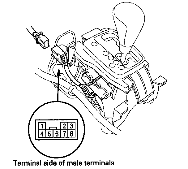 4. Shift out of the P position, and check for continuity between terminals No. 1 and No. 4. There should be continuity.