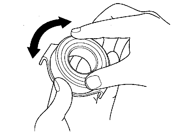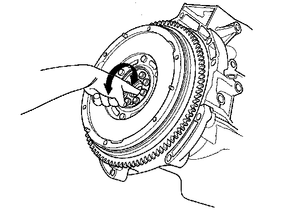 4. Turn the inner race of the pilot bearing with your finger. The pilot bearing should turn smoothly and quietly. Check that the pilot bearing outer race fits tightly in the flywheel. If the race does not turn smoothly, quietly, or fit tight in the flywheel, replace the pilot bearing.