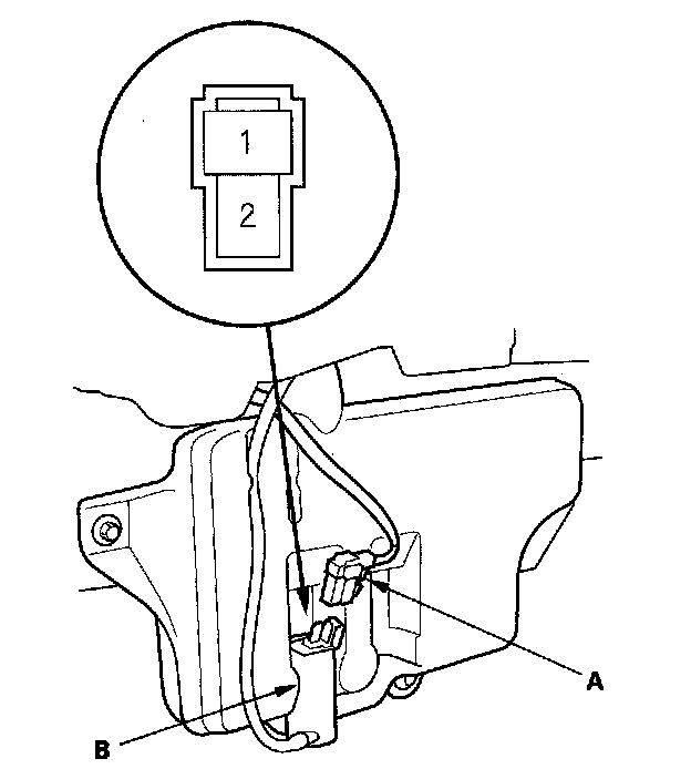 3. Test the motor by connecting battery power to the No. 1 terminal and ground to the No. 2 terminal of the washer motor. The motor should run.