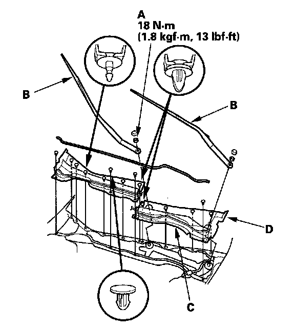 5. Remove the four bolts (B) and wiper linkage assembly (C).