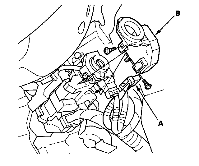 3. Disconnect the 7P connector (A) from the immobilizer-keyless control unit (B).