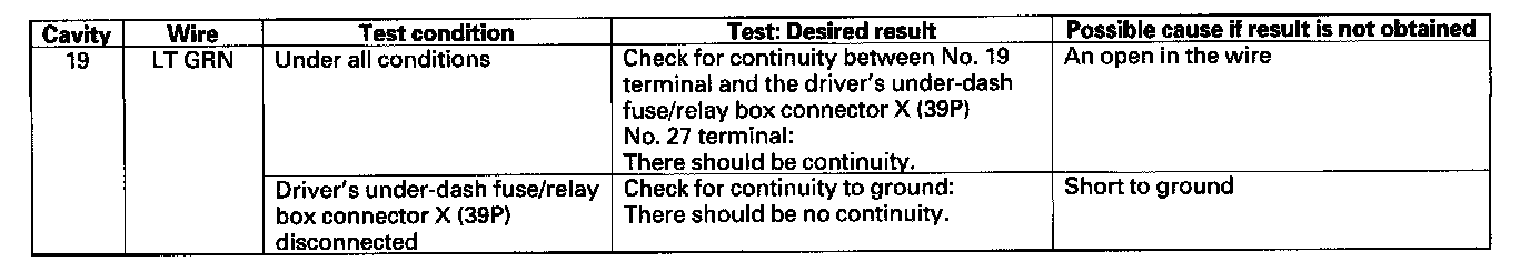 5. Disconnect the 28P connector again, and make this input test at the connector.