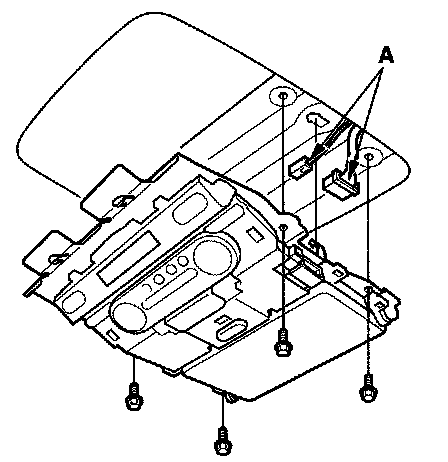 2. Remove the mounting bolts, disconnect the connectors (A) from the rear controller and screen.