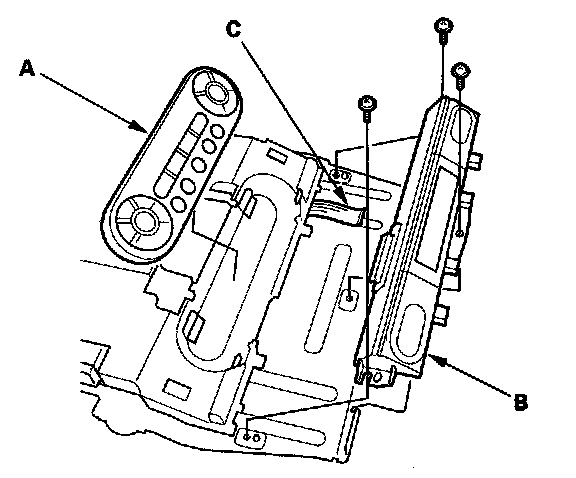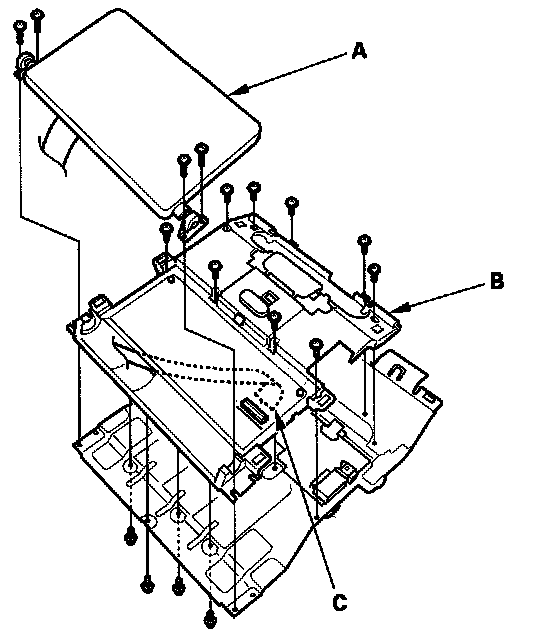7. Remove the screws, then remove the screen (A) and base (B). Disconnect the cable (C).