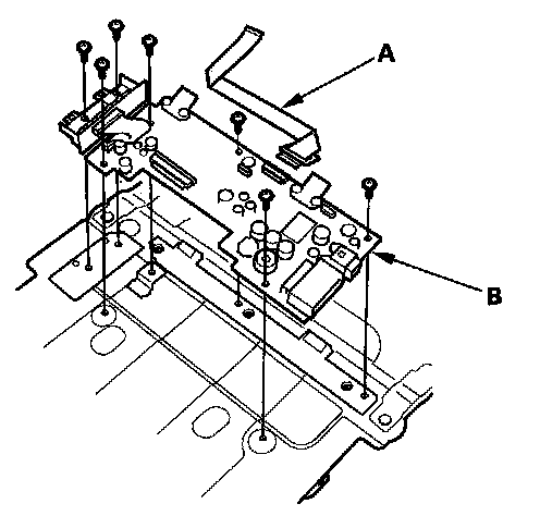 9. Disconnect the cable (A), then remove the screws and the rear control main printed circuit board (B).