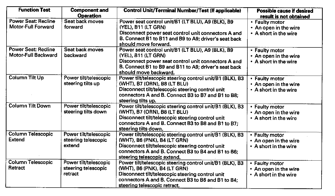 - If the test indicates that the component operates normally, but the function will not operate by doing the function test or the normal use of the component, the control unit that operates that function must be faulty; replace it.