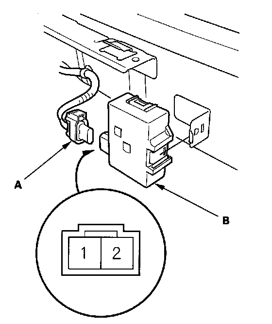 2. Disconnect the 2P connector (A) from the keyless buzzer (B).