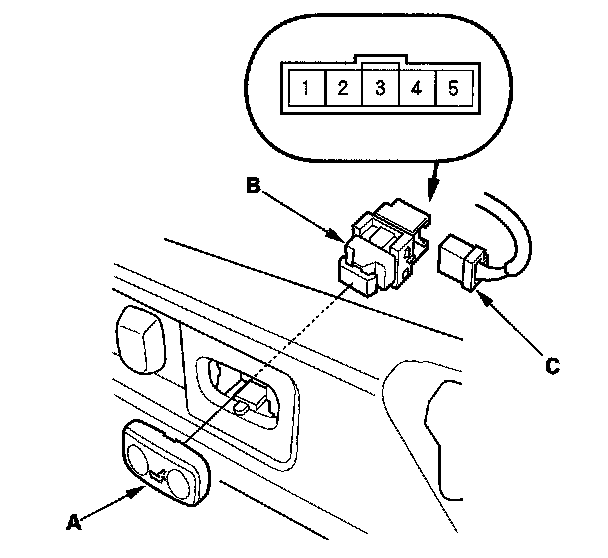 2. Disconnect the 5P connector (C) from the switch.
