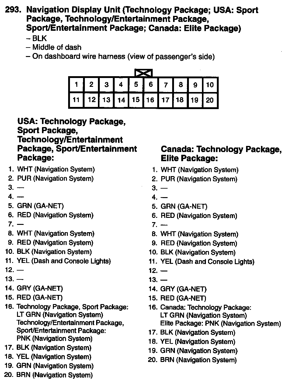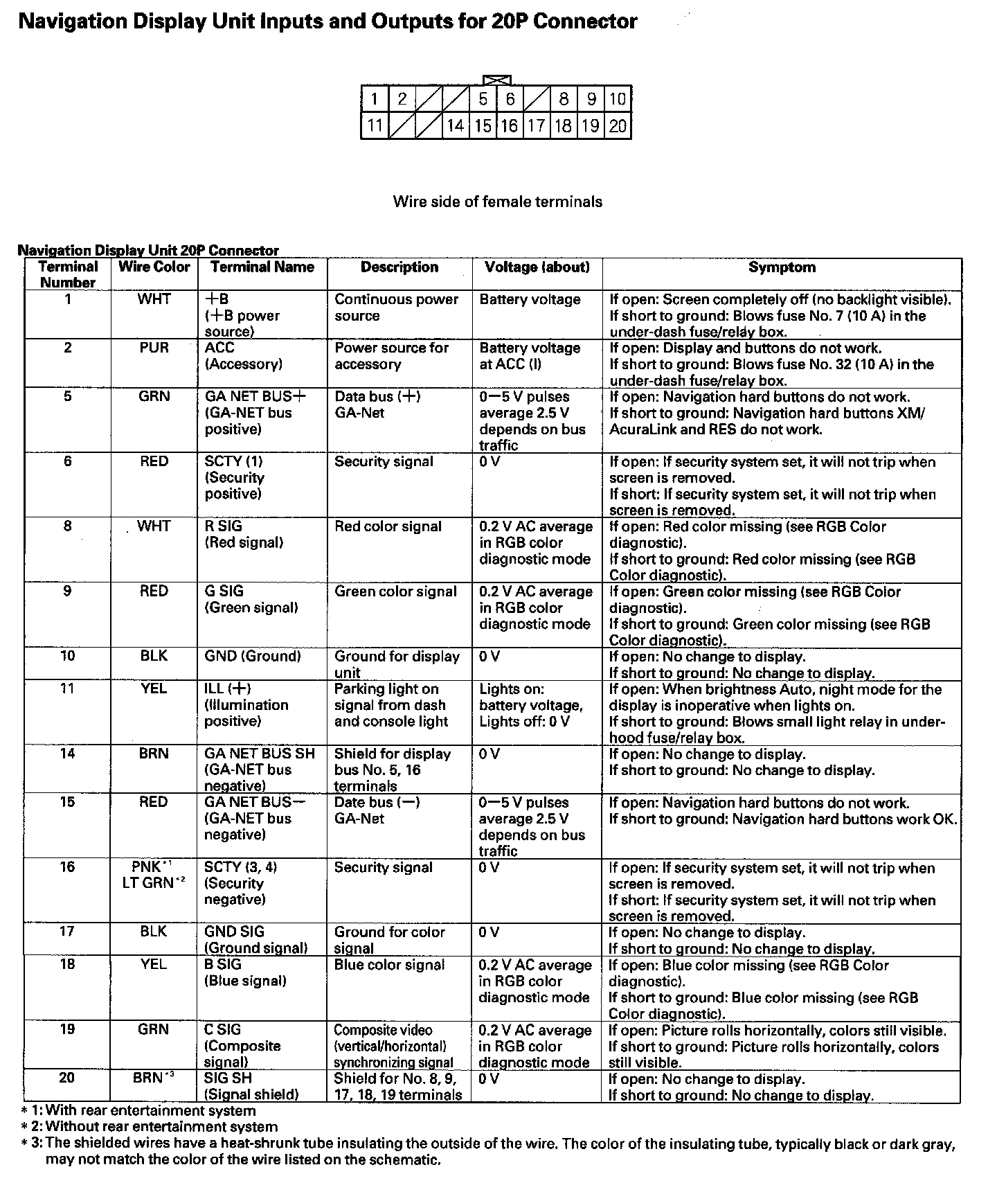 Navigation Unit Inputs And Outputs For 20P Connector: