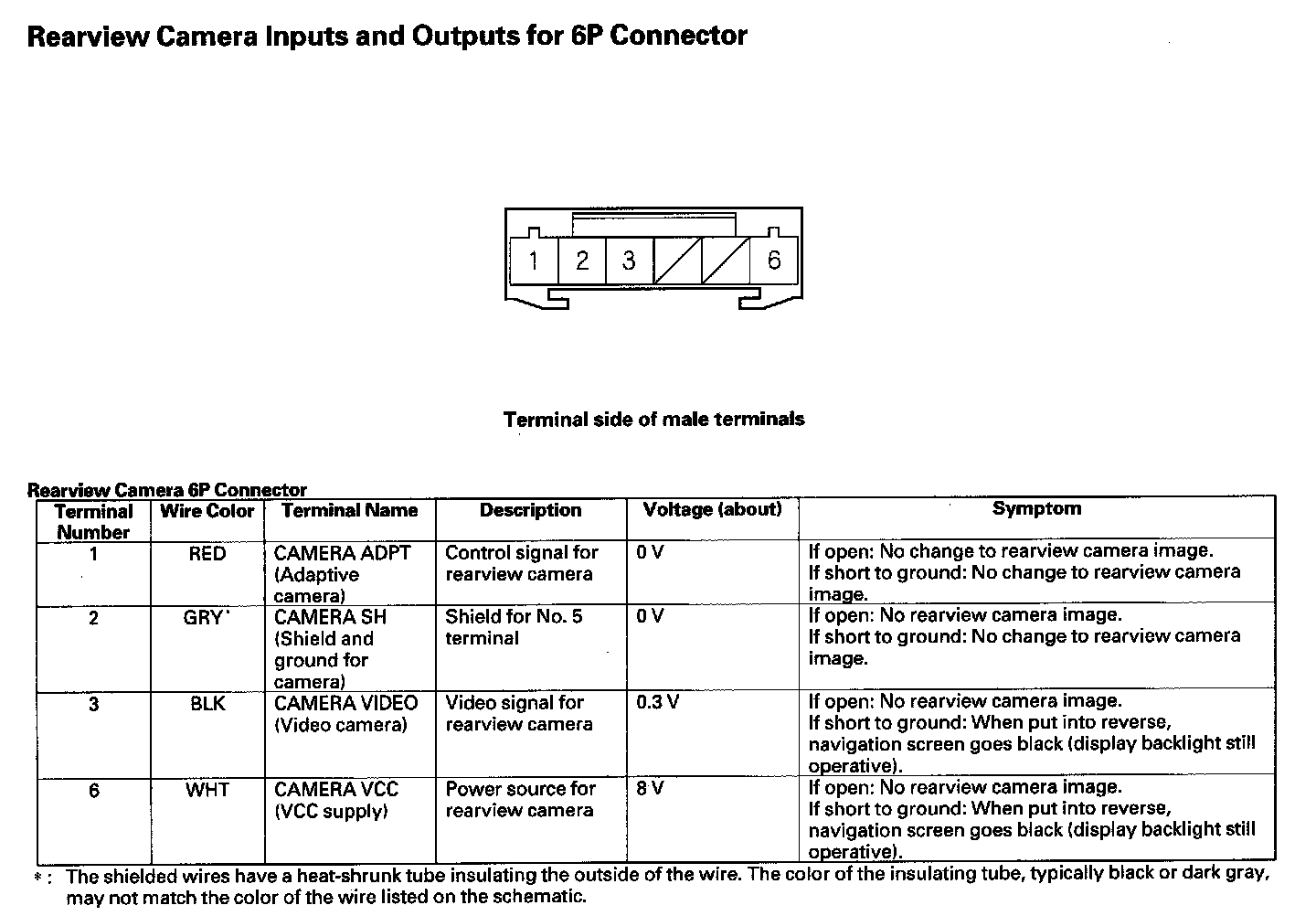 Rearview Camera Inputs And Outputs For 6P Connector: