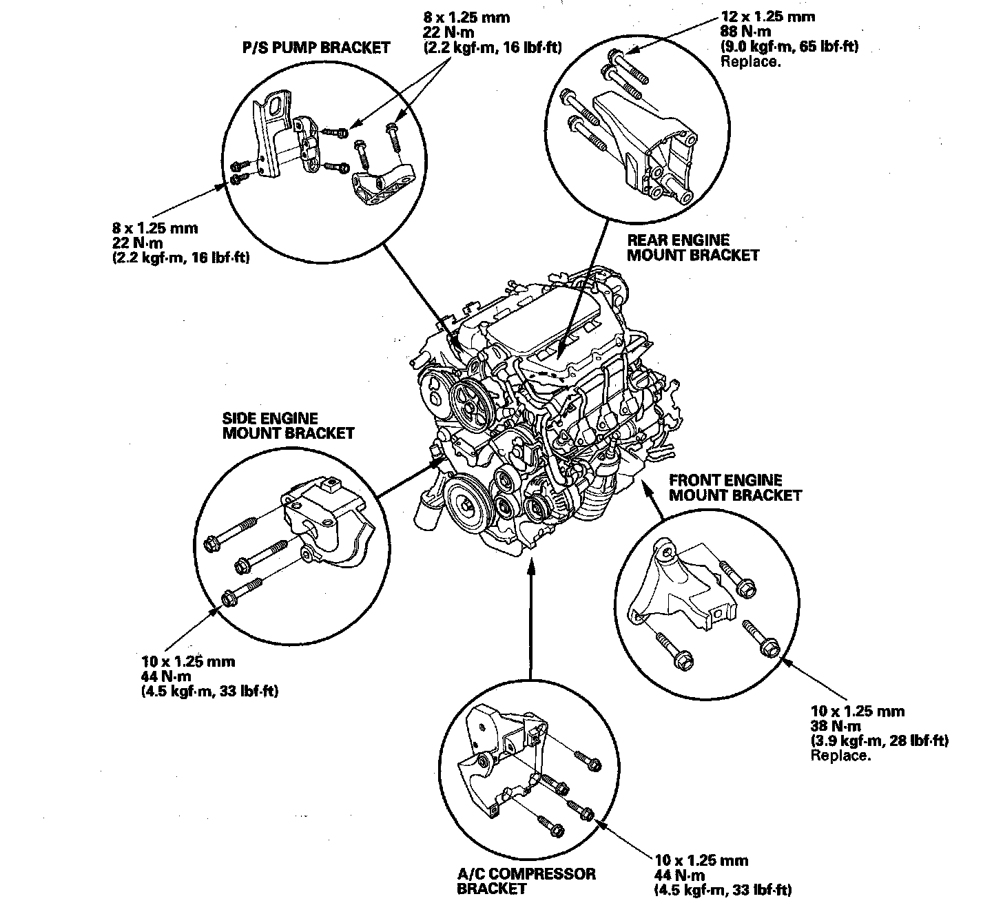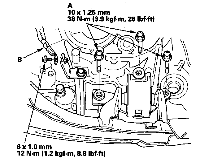NOTE: Reinstall the mounting bolts/support nuts in the sequence given in the following steps. Failure to follow this sequence may cause excessive noise and vibration, and reduce engine mount life.