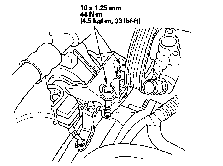 1. Install the engine mount bracket and accessory brackets, and tighten their bolts to the specified torque.