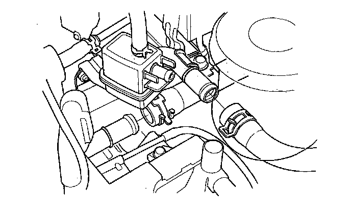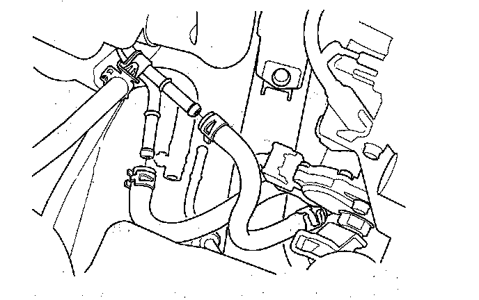 57. Install the brake booster vacuum hose (A) and evaporative emission (EVAP) canister hose (B).