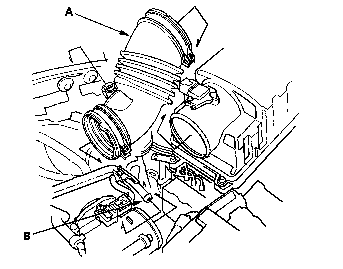 65. Install the air intake duct (A), then install the breather pipe (B).