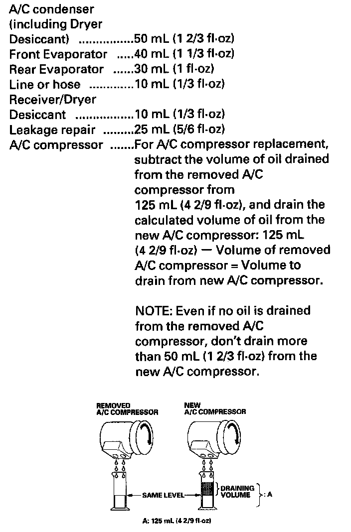A/C Refrigerant Oil ReplacementRecommended PAG oil: DENSO ND-OIL 8