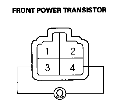 3. Measure the resistance between the No. 3 and No. 4 terminals of the front power transistor. It should be about 1.5 kohms.