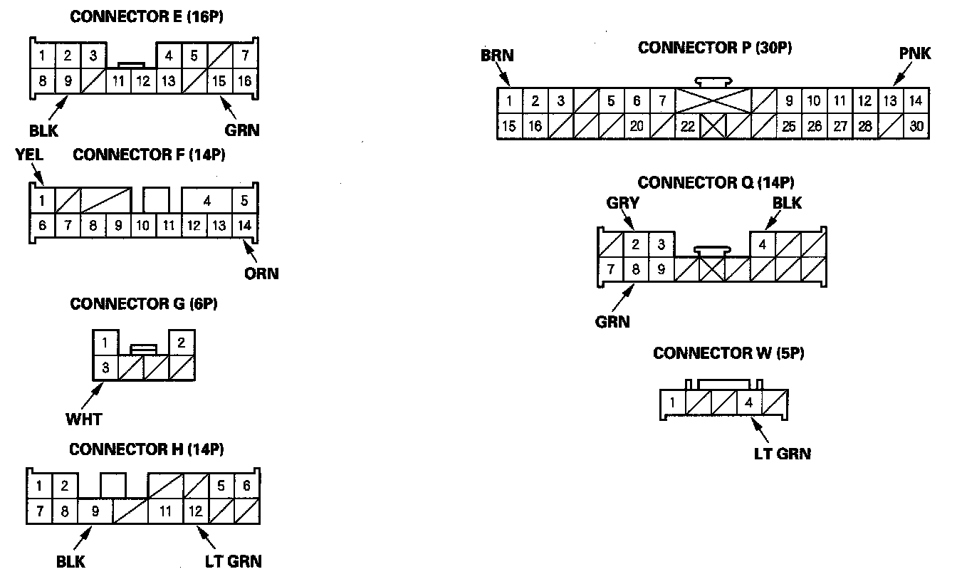 2. Disconnect under-dash fuse/relay box connectors E, F, G, H, P, Q, and W.