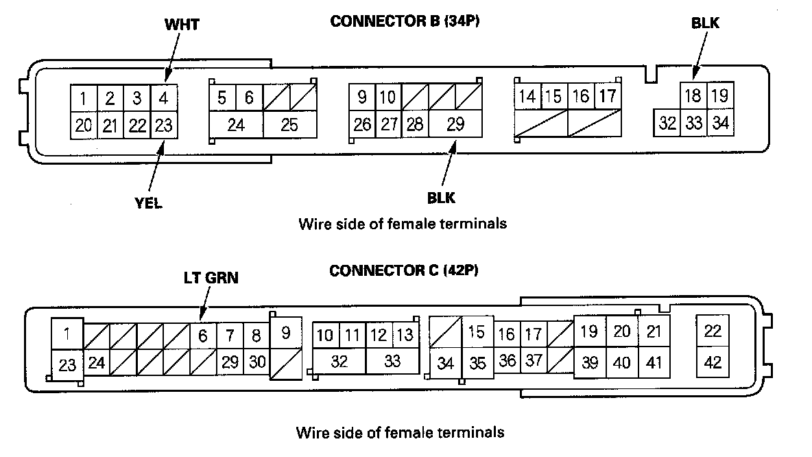 NOTE: All connector views are wire side of female terminals.