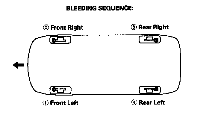 NOTE: Bleed the calipers or the wheel cylinders in the sequence shown.