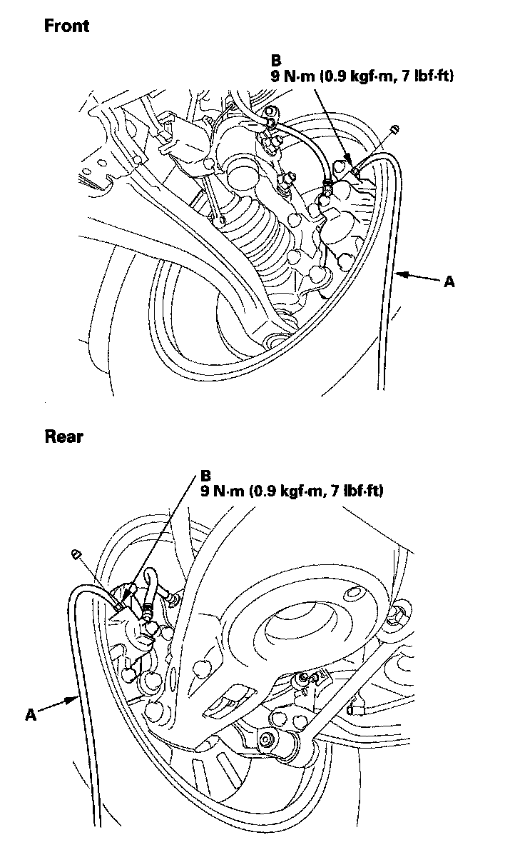 4. Attach a length of clear drain tube (A) to the bleed screw (B), then, loosen the bleed screw to allow air to escape from the system. Then tighten the bleed screw securely.