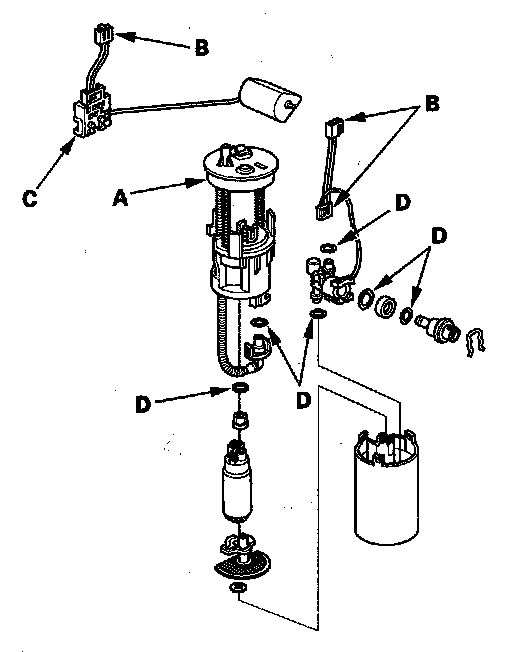 - When installing the fuel gauge sending unit (C), make sure the connection is secure and the connector is firmly locked into place. Be careful not to bend or twist it excessively.