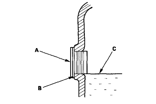 3. Remove the filler plug (A) and the sealing washer (B), then check the condition of the fluid, and make sure the fluid is at the proper level (C).