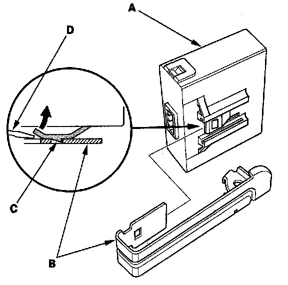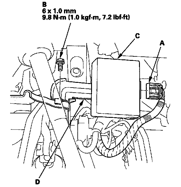 NOTE: While separating the TPMS control unit from the bracket, release the hook (C) on the TPMS control unit using a flat-tipped screwdriver (D), and push it up to remove the bracket.