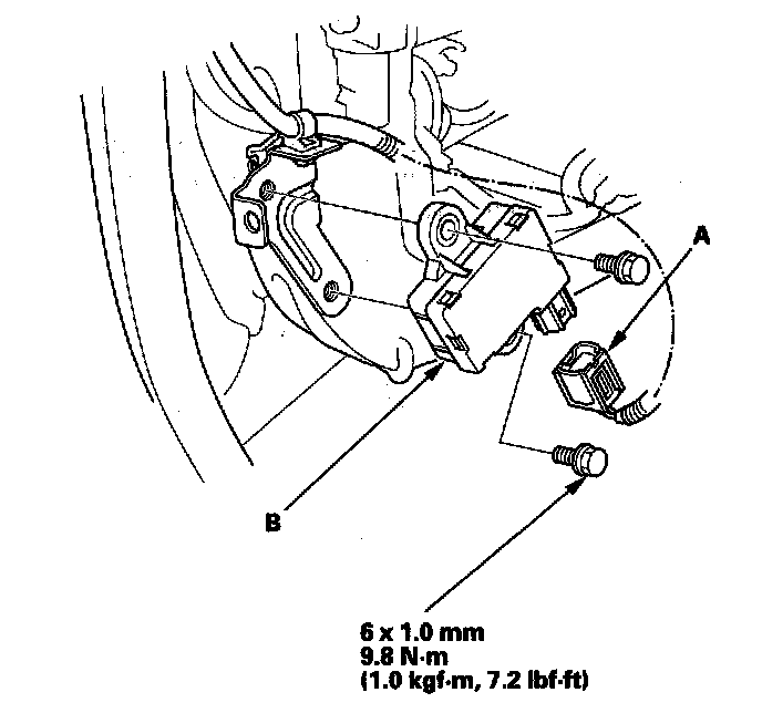 4. Remove the flange bolt (B) from the brake pedal bracket.