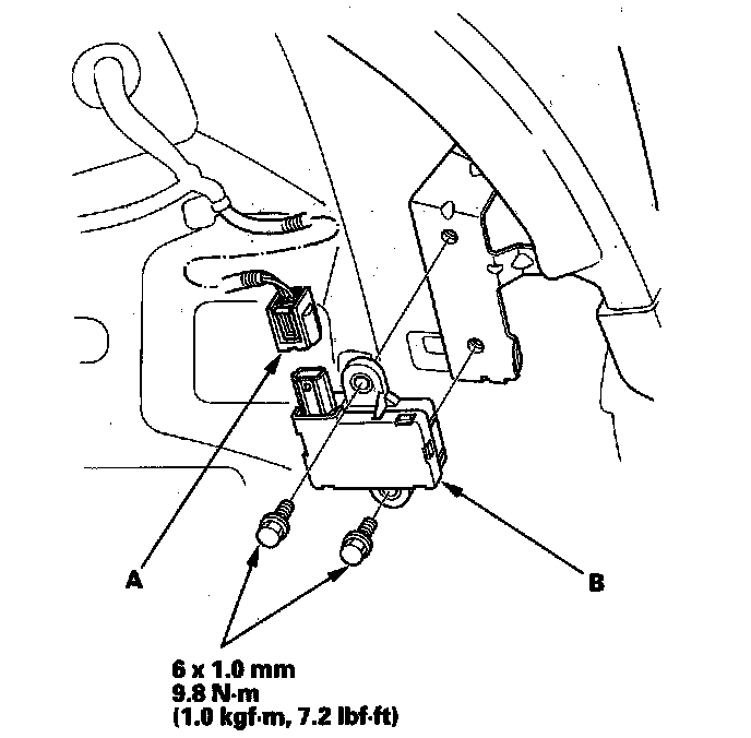 6. Remove the TPMS control unit (A) from the bracket (B).