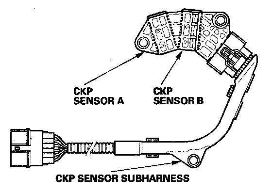 Crankshaft Position (CKP) SensorThe CKP sensor detects crankshaft speed and is used by the PCM to determine ignition timing and timing for fuel injection of each cylinder, as well as detecting engine misfire.