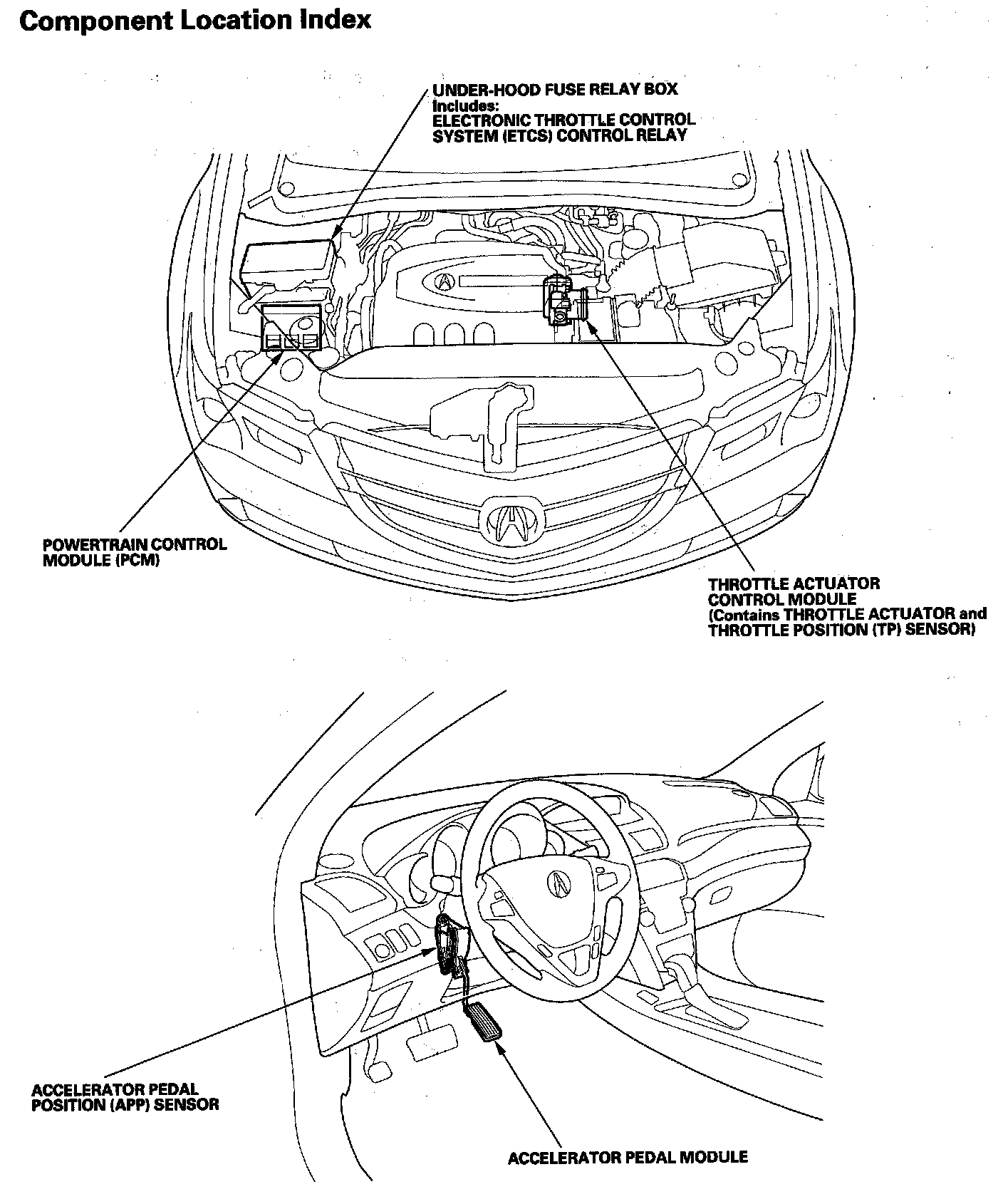 Electronic Throttle Control System Component Location Index: