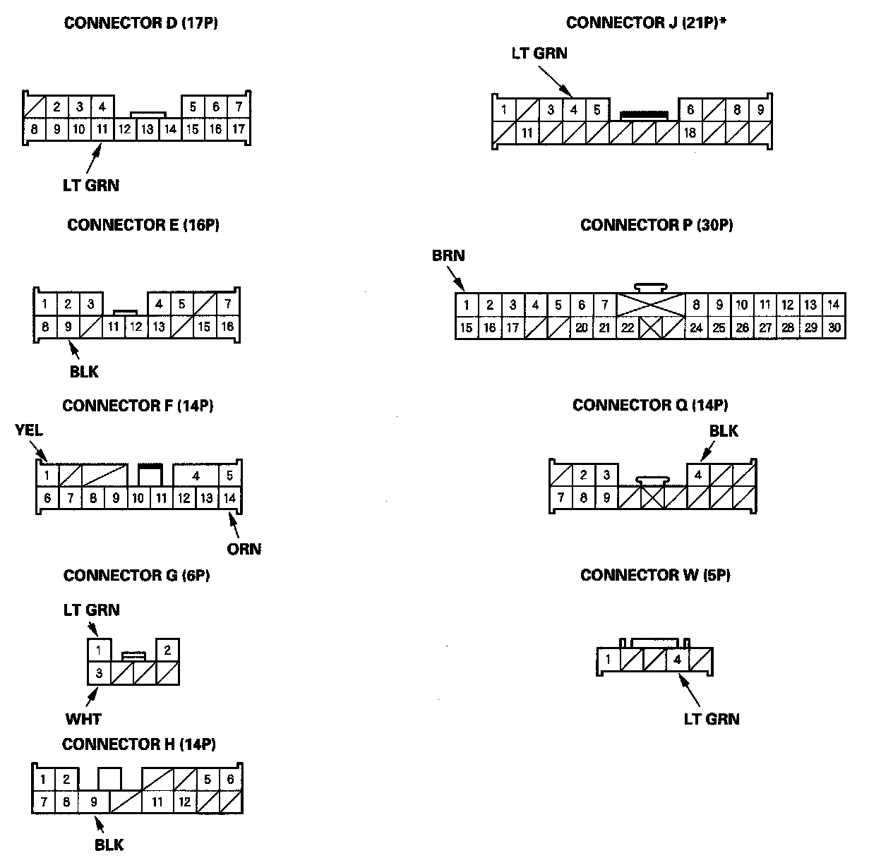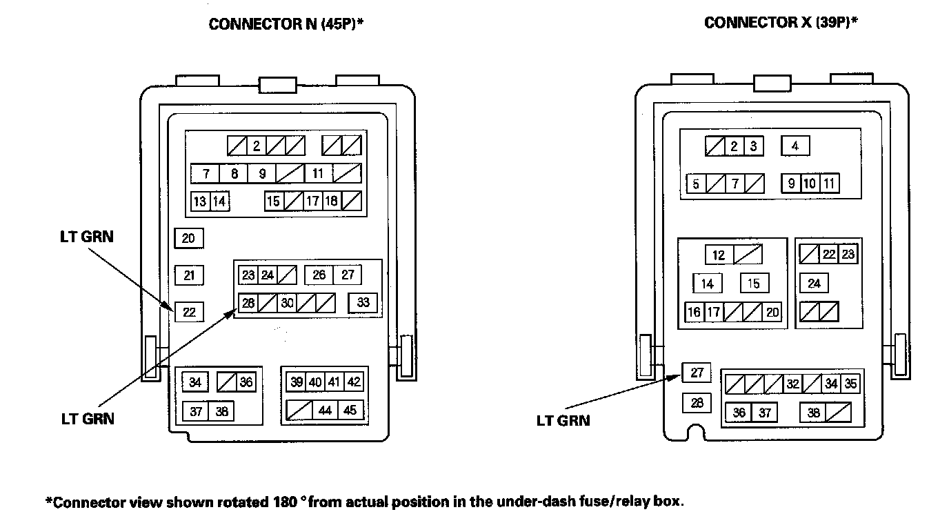 3. Disconnect under-dash fuse/relay box connectors D, E, F, G, H, J, N, P, Q, W, and X.