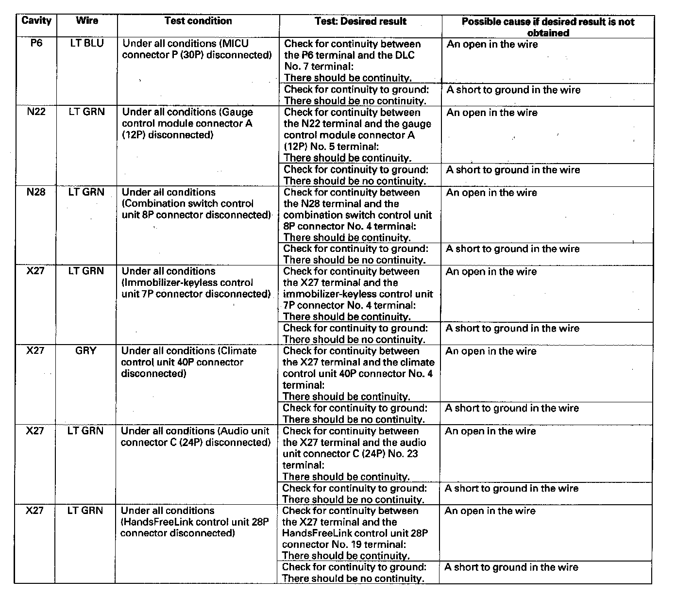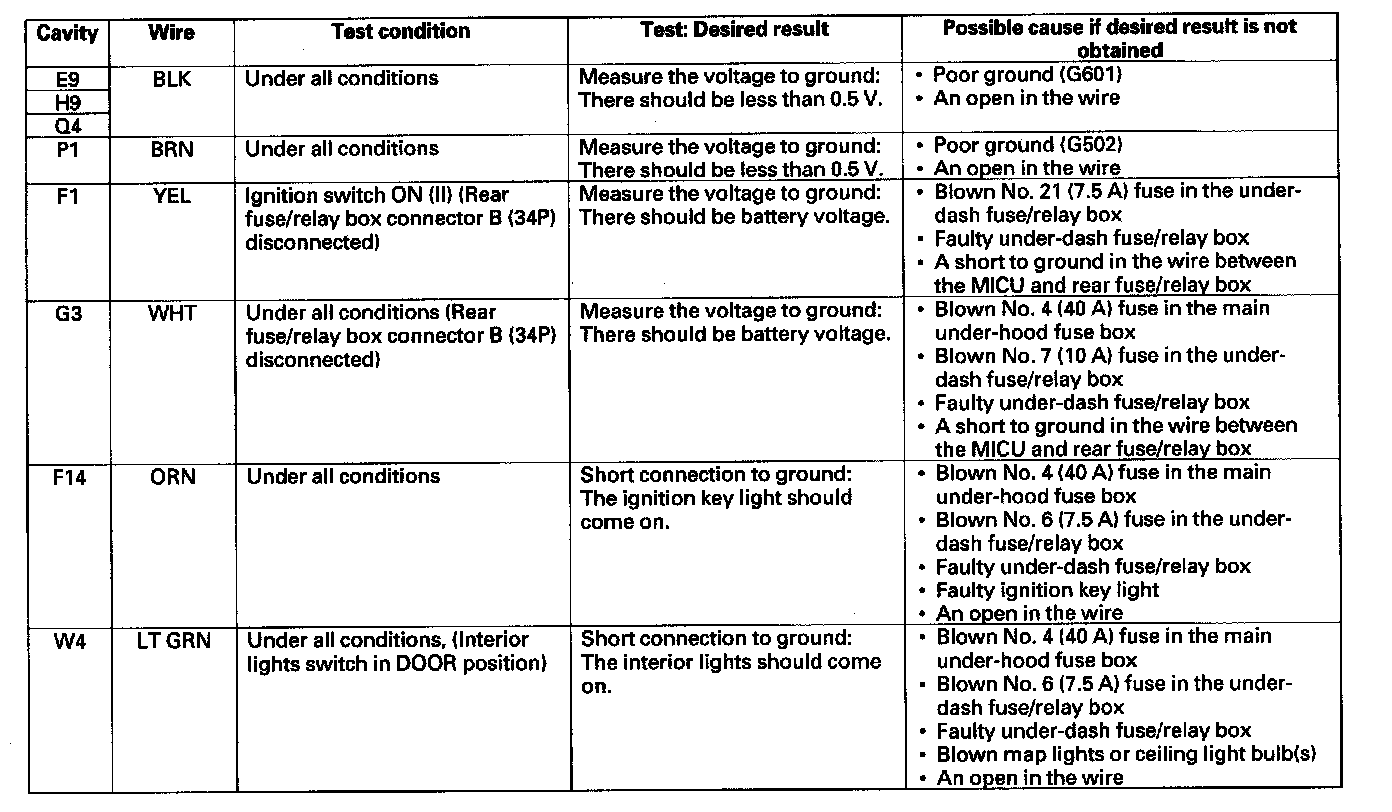 MICU Input TestNOTE: Before testing the MICU, troubleshoot the multiplex integrated control unit first, using B-CAN System Diagnosis Test Mode A.