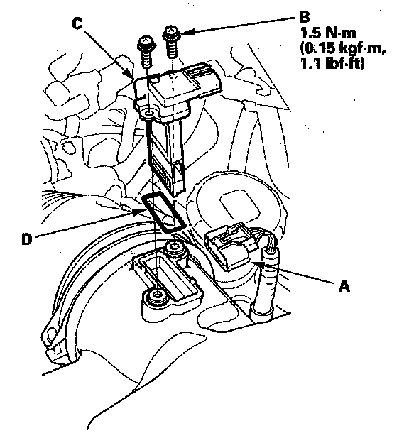 3. Remove the MAF sensor/IAT senor (C).