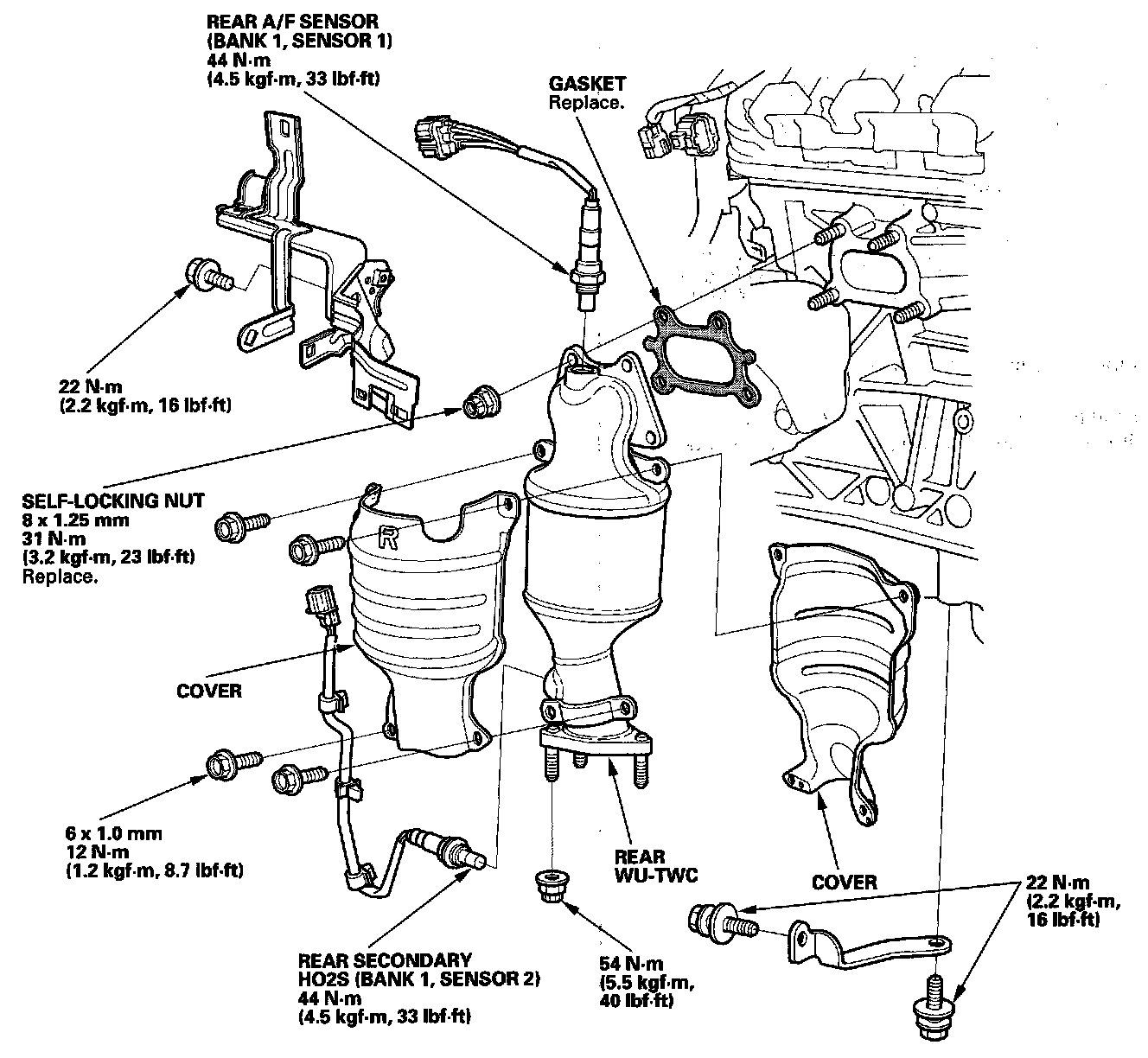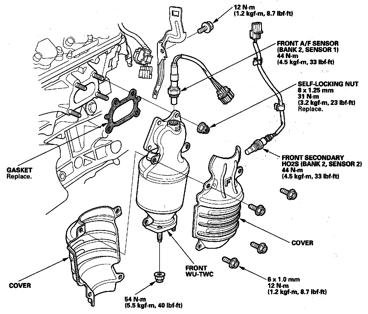2. Disconnect the front air fuel ratio (A/F) sensor connector and front secondary heated oxygen sensor (secondary HO2S) connector.