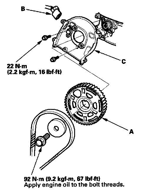 3. Disconnect the CMP sensor connector (B), then remove the back cover (C).