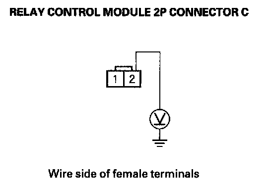3. Measure the voltage between the relay control module connector C terminal No. 2 and body ground.