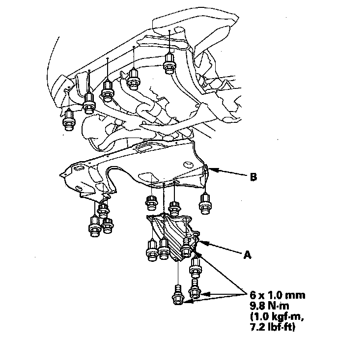 2. Remove the transmission undercover (A) and splash shield (B).