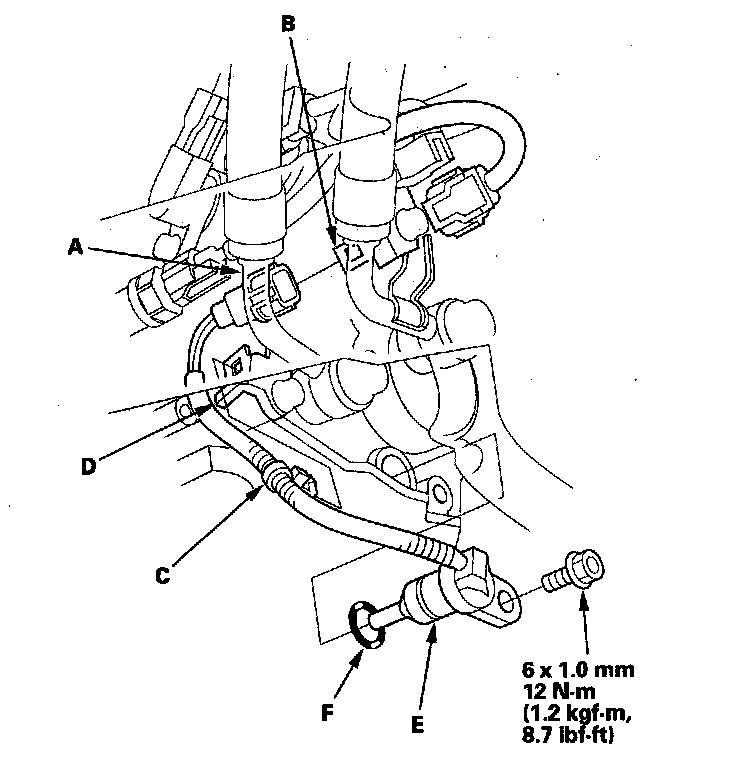 8. Install the new O-ring (F) on the new ATF temperature sensor, and install the ATF temperature sensor.