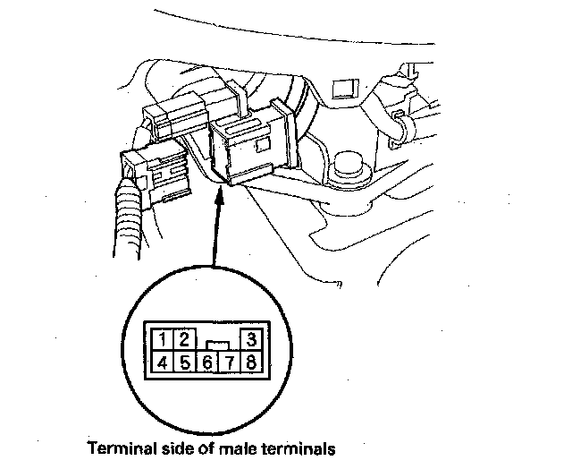 5. Check for continuity between connector terminals No. 8 and No. 2.